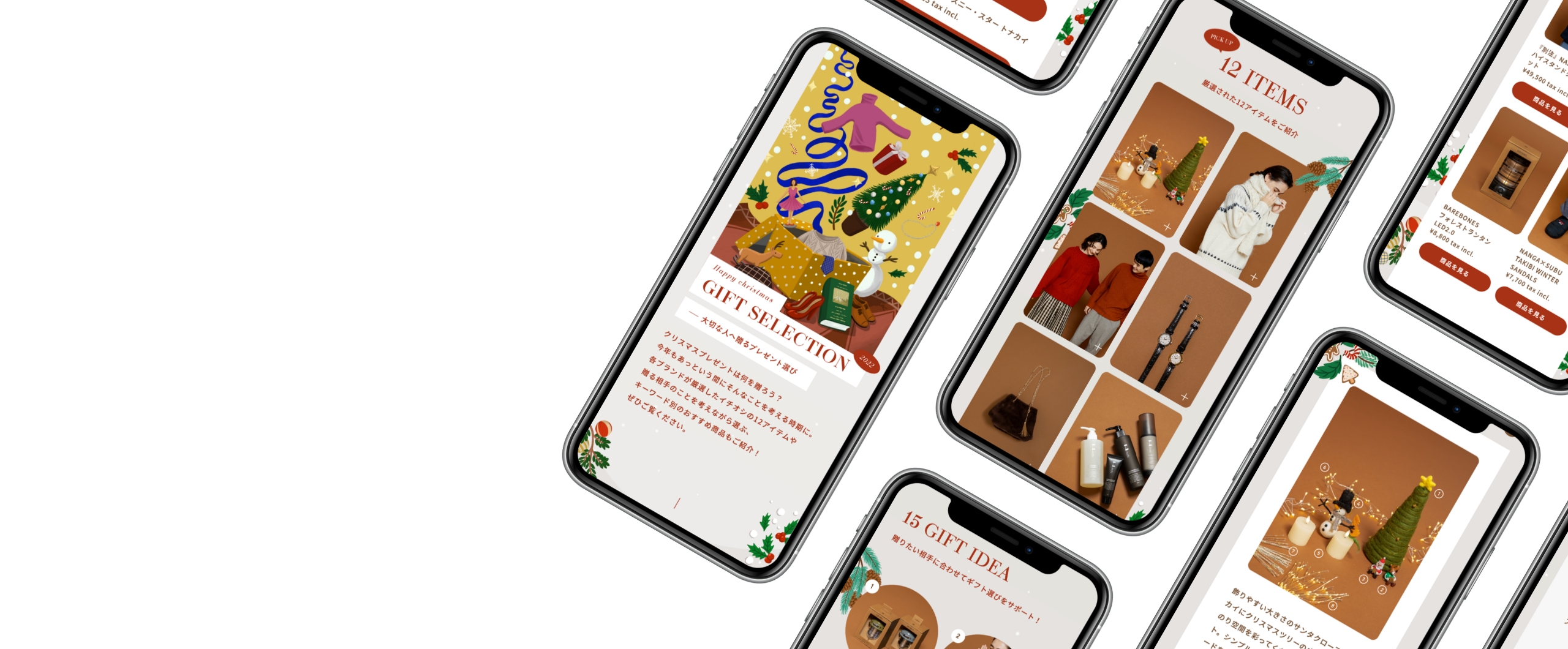 クリスマスに贈るプレゼントをピックアップアイテムとともにキーワード別にも訴求。人気イラストレーターとコラボして、クリスマス感をより盛り上げるようなページ構成。