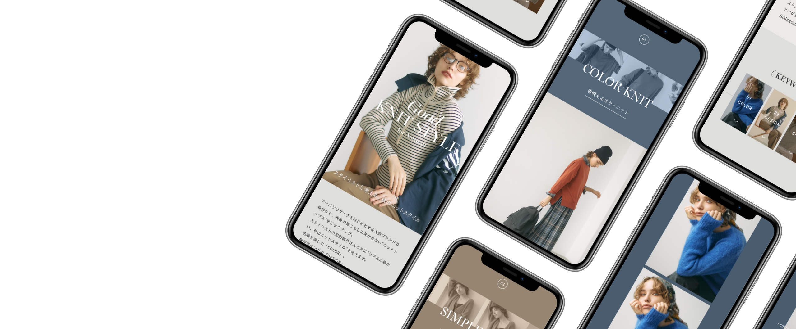 ニットスタイリング訴求コンテンツ。人気スタイリストを起用して、キーワード別にスタイリング提案を行ったコンテンツ。